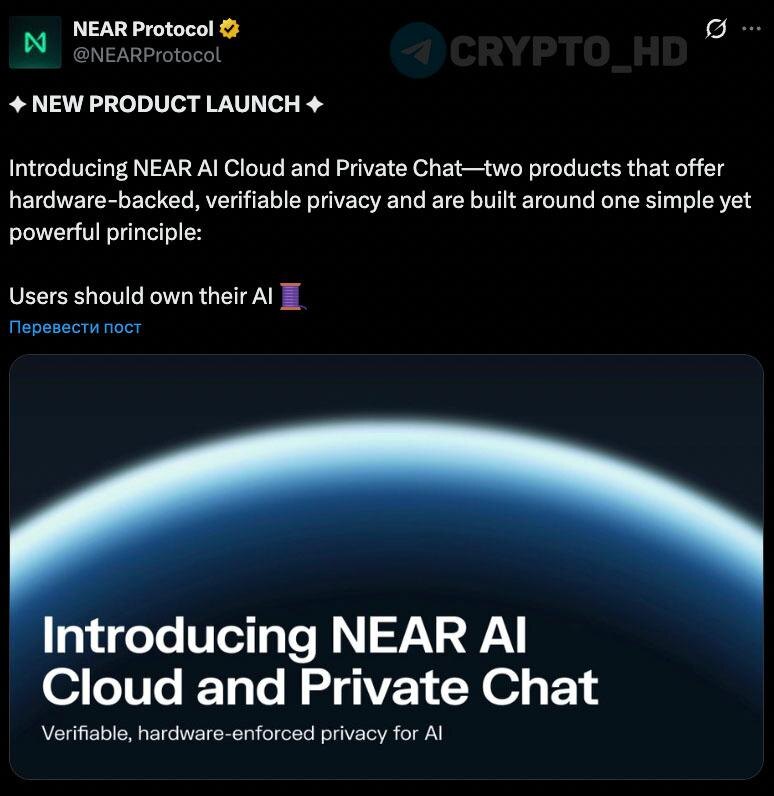 🧠 #NEAR В NEAR Protocol объявили о запуске двух новых продуктов – NEAR AI Cloud и Private Chat (анонс) Crypto Headlines