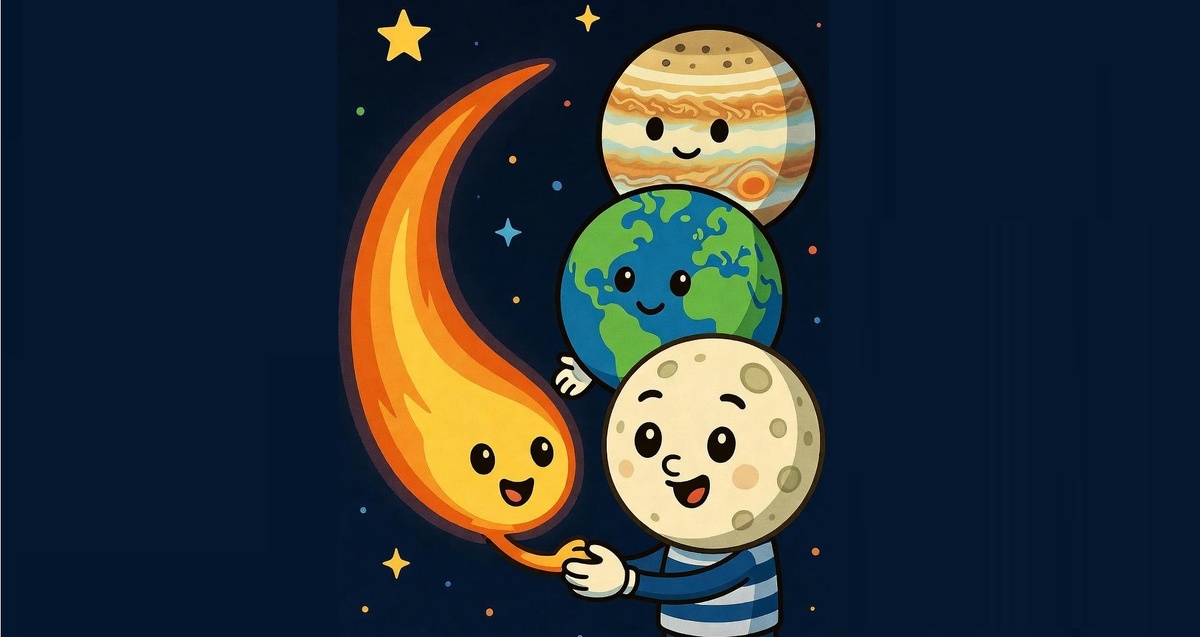 Официально это третья обнаруженная межзвёздная комета (после ‘Oumuamua и Borisov). Её нашли в 2025 году, она летит из другой звёздной системы, пролетает мимо Солнца и снова улетает навсегда. Скорость огромная — около 58–68 км/с, её ничто не удерживает в нашей Солнечной системе. Ближайшее расстояние до Земли — примерно 270 миллионов километров (это далеко, в 1,8 раза дальше, чем до Солнца).
