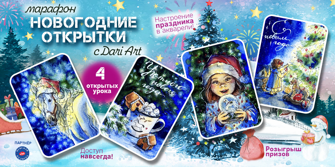 ❄️ Внимание! Долгожданный предновогодний марафон от Dari Art стартует уже на этой неделе 🚀 Каждый год в декабре мы радуем вас уроками с настроением главного праздника года - вот и сейчас приготовили что-то очень интересное! Уже в эту пятницу, 5 декабря стартует марафон "Новогодние открытки" 🌠 🎄 Акварельный скетчинг 🎄 Эффектные сюжеты 🎄 Розыгрыш призов В марафоне "Новогодние открытки" нас поддерживает компания «Невская палитра (https://t.me/nevskayapalitra)» 🎨 В уроках марафона вы увидите материалы от этого производителя, а в розыгрыше сможете выиграть творческие призы! 🎁 Принять участие может каждый - мы не оцениваем уровень работ, только выполнение условий! 📌Для участия нужно: ✓ Быть подписанным на нашу группу и группу партнера https://t.me/nevskayapalitra
