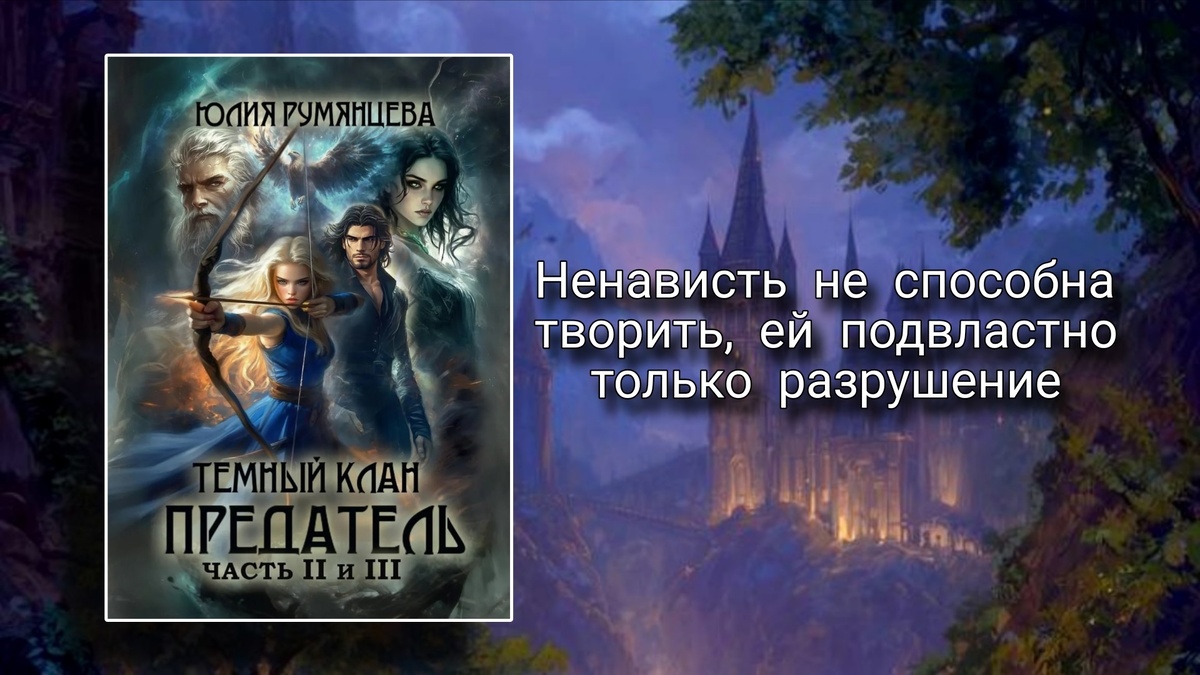 Начав читать вторую часть серии "Великие Кланы" - "Тёмный Клан. Предатель" Юлии Румянцевой, я ожидала продолжения интригующей истории, но действительность превзошла все мои ожидания. Если первая книга затягивала в мир двух противоборствующих начал и знакомила с героями, то это продолжение просто настоящий водоворот страстей, политических интриг и внутренних драм, который не отпускает до последней страницы. Чтобы достать жемчужину, нужно нырнуть на дно, правда, постичь сию простую истину дано не каждому, некоторые пытаются это сделать, сидя на берегу. С первых же глав становится ясно: покоя не будет. Райан, глава Клана Ищущих - это теперь не просто могущественный воин, а человек, разрывающийся между долгом, любовью и невыносимой тяжестью прошлого. Его душевные метания чувствуются сквозь строчки, что невольно начинаешь ощущать его боль, его ярость, его бессилие. Он «мчится по ночным дорогам» не просто так - он бежит от себя, от воспоминаний об Адде, от ответственности перед Илаитой, от