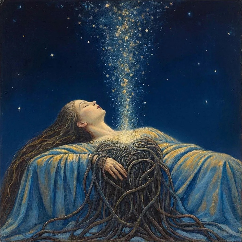 Освобождающее дыхание говорит напрямую с этим доповествовательным я. Оно не спрашивает: «Почему ты боишься?» Оно говорит телу: «Дыши. И позволь страху выйти вместе с углекислым газом». Это прямой путь к корню. Без переводчика.