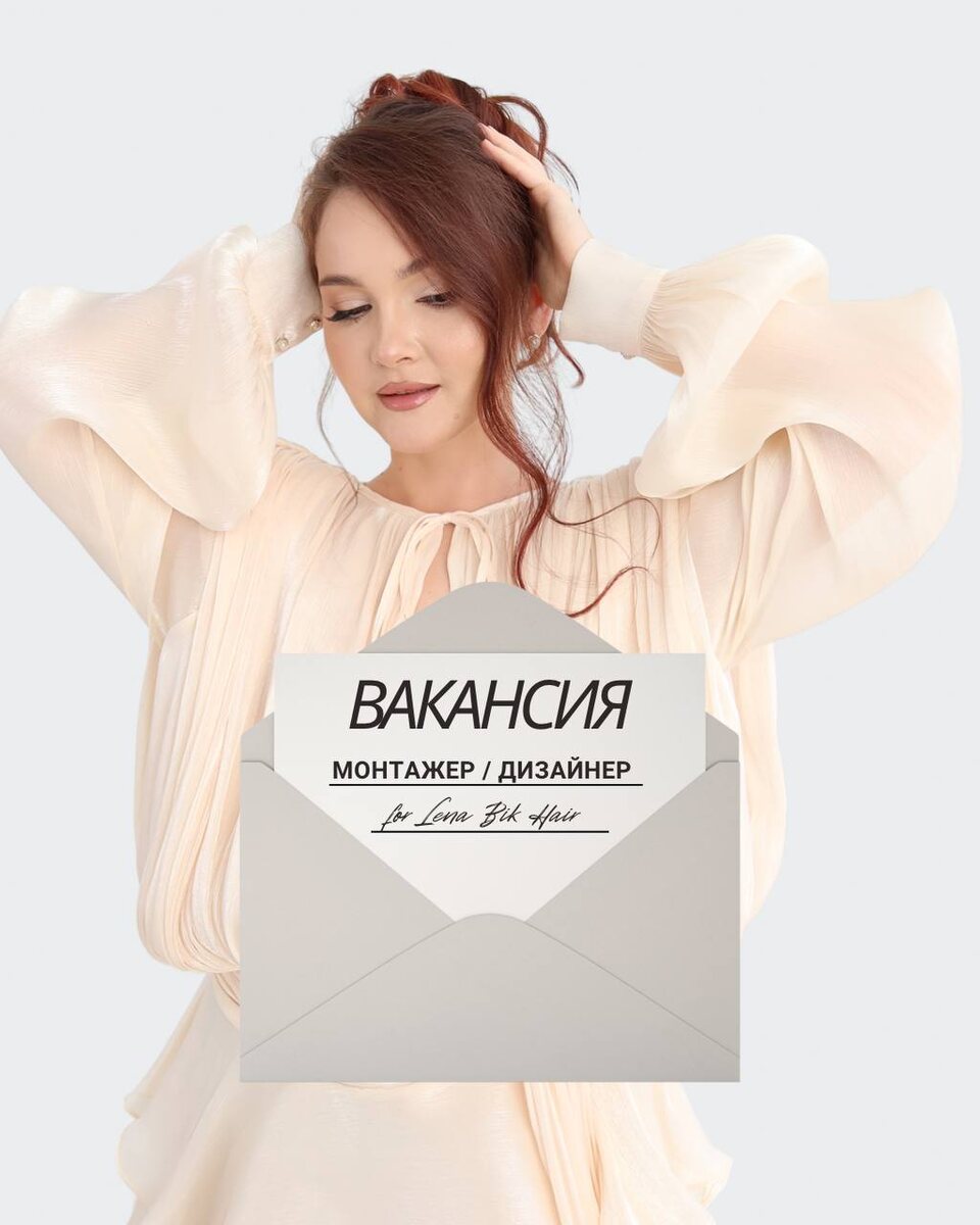 ВАКАНСИЯ - монтажер / дизайнер для меня ⬇️ Требования монтаж: Чувство эстетики, стиля, ритма под музыку. Монтаж коротких видео (туториал, до/после, в формате reels до 1 минуты). Базовая цветокоррекция. Скорость (готовое видео в течении 24ч) Монтаж на телефоне (CapCut, Vn). Требования дизайн: Знать основы дизайна - композиции, колористику, цветокоррекцию, подбор шрифтов. Иметь чувство эстетики, стиля. Дизайн постов, афиш (Canva или другое приложение). 📌Ответственность - сдавать работу в срок без задержек. Креативность - желание создавать оригинальные работы. 🖇️Частичная занятость (может быть студент, как подработка). Оплата в любой валюте (вы можете быть из любой страны). Напишите мне @lenabik, приложите ссылки на пару своих работ для ознакомления. Жду 🫶