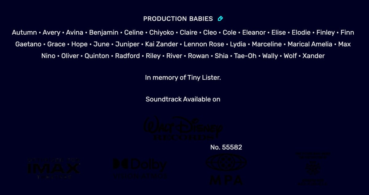 Признавайтесь, часто ли вы досматриваете титры в мультфильмах Pixar или Disney до самого конца? Если да, то, возможно, вы уже сталкивались с одним забавным и очень милым разделом — «Production Babies». Классический анимационный фильм создаётся годами. За это время у аниматоров, сценаристов и продюсеров не только выгорают мониторы и исписываются блокноты, еще в их семьях появляются малыши. И вот именно этих новорождённых и чествуют в разделе «Production Babies», там перечисляют имена всех детей, родившихся у сотрудников студии во время работы над мультфильмом. Эта традиция зародилась ещё во времена первой «Истории игрушек» в 1995 году и с тех пор прочно вошла в обиход. Так студия благодарит семьи своих сотрудников за терпение и поддержку. А ещё студиям очень нравится обыгрывать название раздела в духе самого мультфильма. В «Рапунцель» это «Дети Хамелеона», в «Душе» «Выпускники семинара „Ты“», в «Базз Лайтере» «Будущие космические рейнджеры». Интересно, как можно было бы назвать их в Пр