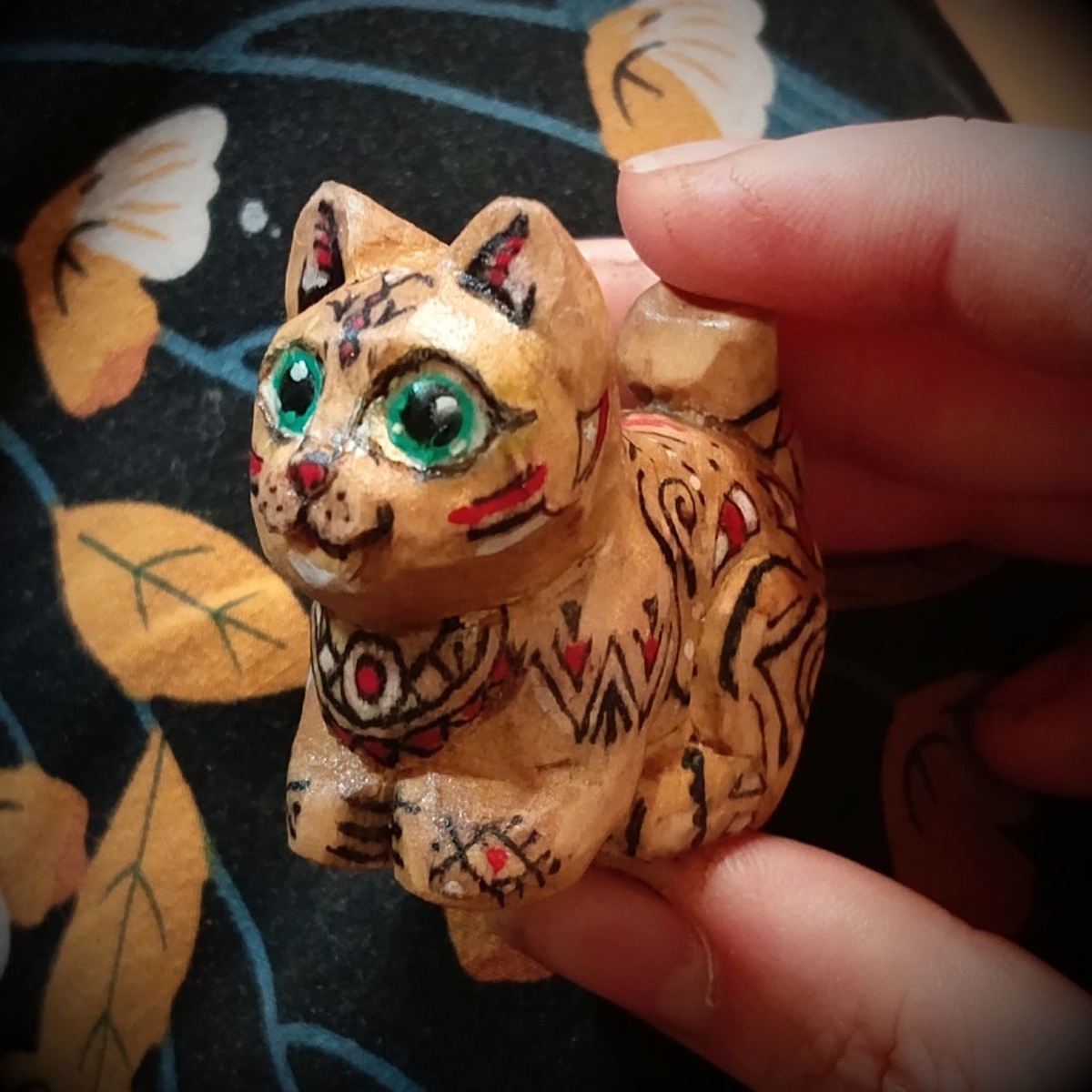 Котик-шаманчик — тотемный зверёк с секретом 🐱🌀 Маленький, но мощный! Всего 4,5 см в длину, но сколько в нём силы. Расписан акрилом вручную — каждый штрих наполнен смыслом. Такой оберег проведёт через сомнения и поможет услышать внутренний голос. Свободен к приобретению! #резьбаподереву #котик #шаман #оберег #vereya_wood