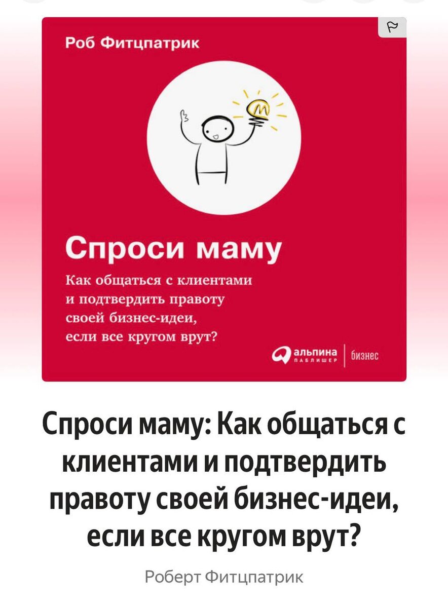 📚 Закончил читать книгу Роберта Фитцпатрика «Спроси маму». Рекомендовали давно — добрался только сейчас. И зря тянул. Эта книга обязательна к прочтению каждому предпринимателю. Она о том, как правильно проводить интервью и опросы перед запуском нового продукта, услуги или гипотезы. Казалось бы, простая вещь — поговорить с клиентом. Но на практике 99% предпринимателей делают это неправильно. И я говорю это не только по собственному опыту, но и по наблюдениям за огромным количеством проектов. Фитцпатрик объясняет простые, но критически важные принципы: — как задавать вопросы, которые дают реальные данные — почему «нравится / не нравится» — это ловушка — и как получить честную обратную связь, а не комплименты. Читается легко и очень быстро. И точно окупится многократно в любом бизнесе. Очень рекомендую. 📱 Канал Юрия Меньшикова подписаться
