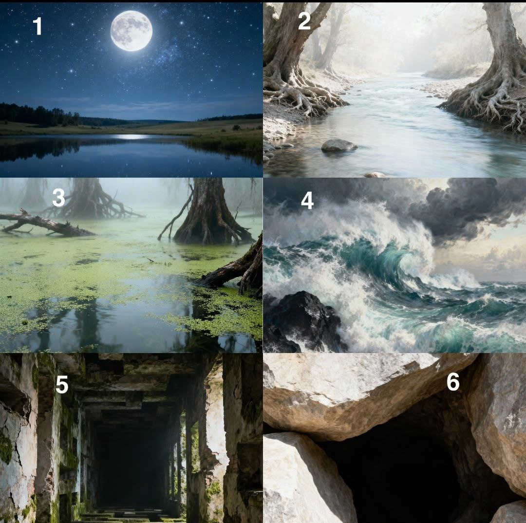 Тест на уровень тревожности «Внутренний ландшафт» Представьте, что вы смотрите на внутренний ландшафт своей души. Какая из следующих метафорических картин лучше всего отражает ваше состояние прямо сейчас? Выберите ту, которая вызывает у вас наиболее сильный отклик, и прочитайте описание: 1️⃣ Тихое озеро с кристально чистой водой, отражающей ясное звездное небо. Вокруг – спокойная, безмолвная поляна, освещенная лунным светом. 2️⃣ Река с плавным, ровным течением. На берегу растут крепкие деревья, а вода несет небольшие, гладкие камни, не создавая шума. 3️⃣ Болото, где поверхность воды мутная и покрыта ряской. 4️⃣ Бушующий океан во время шторма. Огромные волны разбиваются о скалы, небо темное, ветер завывает. 5️⃣ Лабиринт из старых, полуразрушенных стен. Путь неясен, впереди – темнота, слышны лишь отдаленные, неразборчивые звуки. 6️⃣ Пещера, вход в которую почти завален камнями. Внутри – кромешная тьма, и ощущение, будто что-то большое и тяжелое давит сверху. В комментах отве