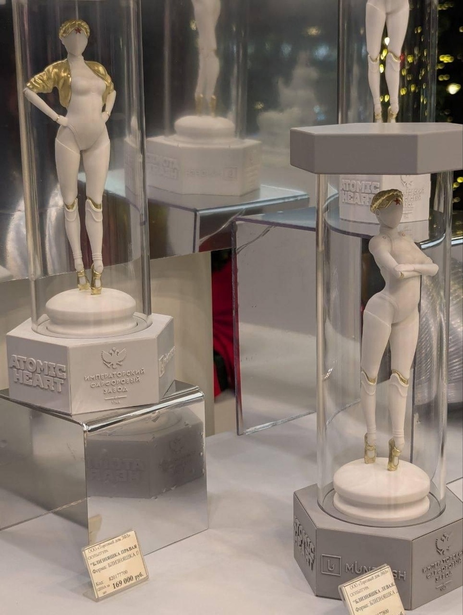 Новая коллекция Atomic Heart от Императорского фарфорового завода Императорский фарфоровый завод представил коллекцию фарфоровых изделий по мотивам игры Atomic Heart. Главным экспонатом стали фигурки близняшек — персонажей, вдохновлённых образом балерины Аниты Пудиковой. На презентации она лично присутствовала, так как именно её внешность легла в основу этих героинь. Коллекционные фигурки украшены вставками из настоящего агата и покрыты золотом. Стоимость изделия для коллекционеров составляет 169 000 рублей. Остальные предметы коллекции, включая разнообразную тематическую атрибутику, представлены в более доступном ценовом сегменте. #atomicheart #атомикхарт #гикберсерк #игровыеновости #игры #новости