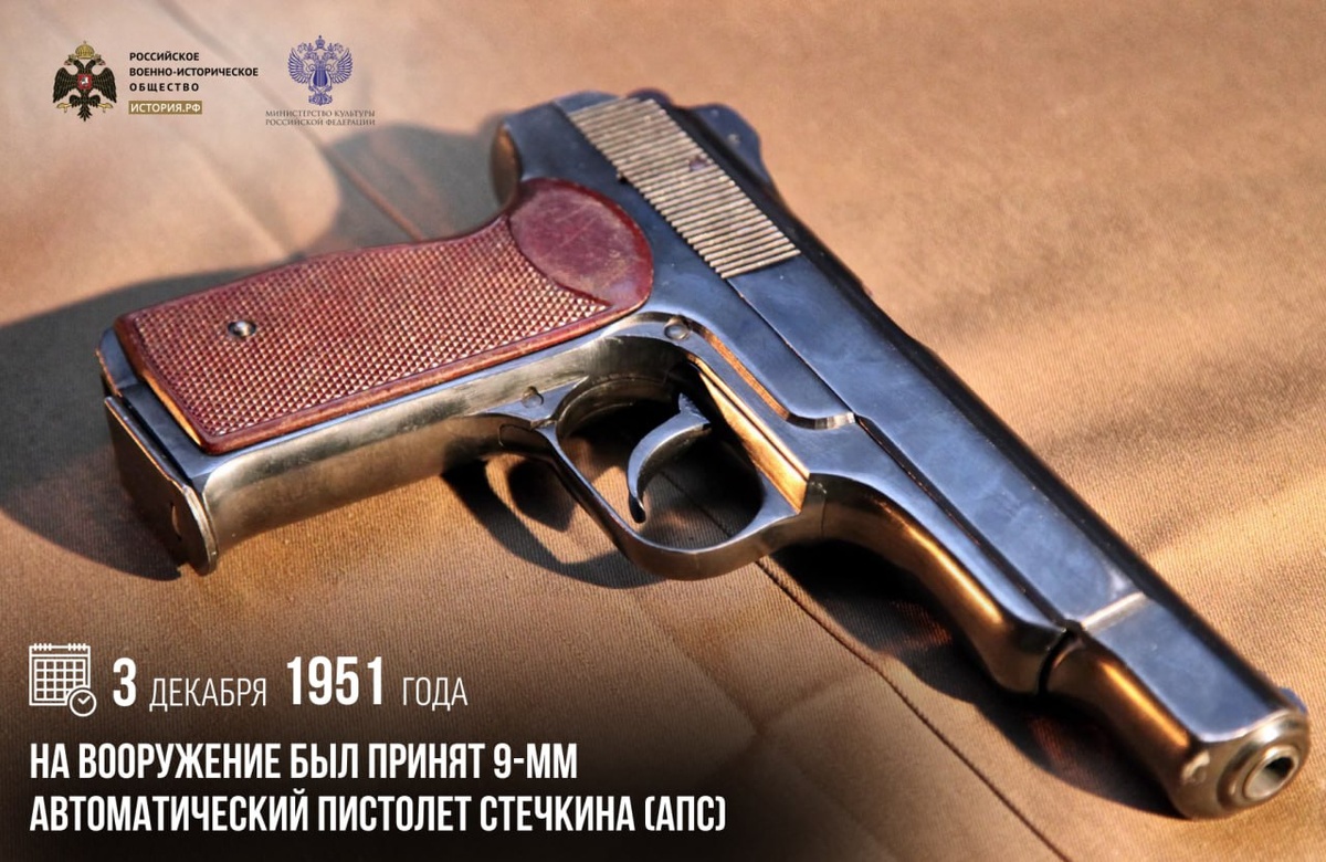 3 декабря 1951 года на вооружение был принят 9‑мм автоматический пистолет Стечкина (АПС)