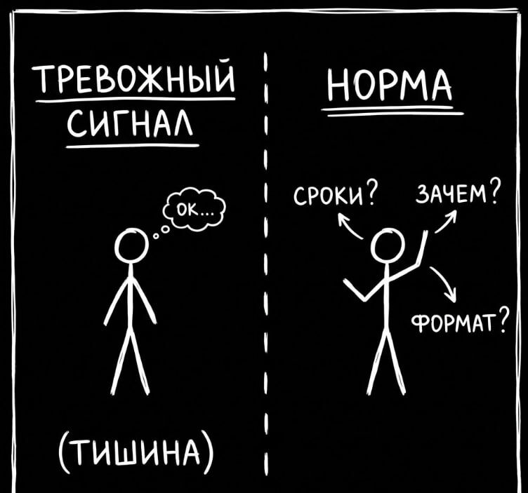 Понял или просто кивнул: редфлаги после постановки задачи Самая дорогая ошибка в делегировании - думать, что задача понятна, только потому что человек сказал "ок, сделаю". Я для себя сделал чек-лист из редфлагов. 1. Реакция на разговор Здоровая реакция: человек задаёт вопросы, уточняет детали, перепроверяет сроки и формат результата. Редфлаг: кивает, говорит "понял", спешит закончить разговор, избегает конкретики. 2. Поведение после встречи Норма: появляются промежуточные апдейты, вопросы в чате, уточнение нюансов. Редфлаг: полная тишина до дедлайна. Ни одного статуса, ни одного "уточню". 3. Отношение к правкам Норма: человек спрашивает "как сделать лучше", фиксирует изменения в своей системе. Редфлаг: защищается, спорит, переводит стрелки: "я так понял", "ты так сказал". 4. Контекст Норма: сотрудник связывает задачу с целями проекта, понимает "зачем". Редфлаг: делает буквально из ТЗ, игнорируя здравый смысл и контекст. Если я вижу 2 и более таких признаков в одной задаче - зн