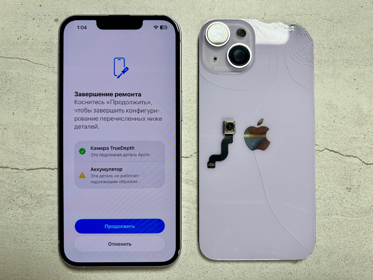 Ко мне в Сервис36.рф принесли iPhone 14: не работает фронтальная камера, задняя крышка разбита, картинка с основных камер мутная. Владелица сказала, что до этого где-то меняли аккумулятор, после чего камеры начали «запотевать», а фронталка совсем отключилась. Задача — вернуть нормальную фронтальную камеру и заодно заменить заднюю крышку, которую клиентка принесла с собой. Как всё началось Я — Денис, мастер по ремонту техники Apple в Воронеже. С этой клиенткой мы заранее списывались: обсудили стоимость, сроки и то, что на iPhone 14 иногда приходится прошивать аппарат после вмешательства в модуль фронтальной камеры. Попросил заранее сделать резервную копию данных в облако. На приёмке телефон выглядел необычно: задняя крышка разбита, линзы тыловых камер залапаны, стекла с синеватым отливом, как у копийных крышек. Уже по внешнему виду было видно, что аппарат до меня вскрывали не один раз и ставили не самые аккуратные детали. Что я увидел на приёмке Симптомы по устройству были такие