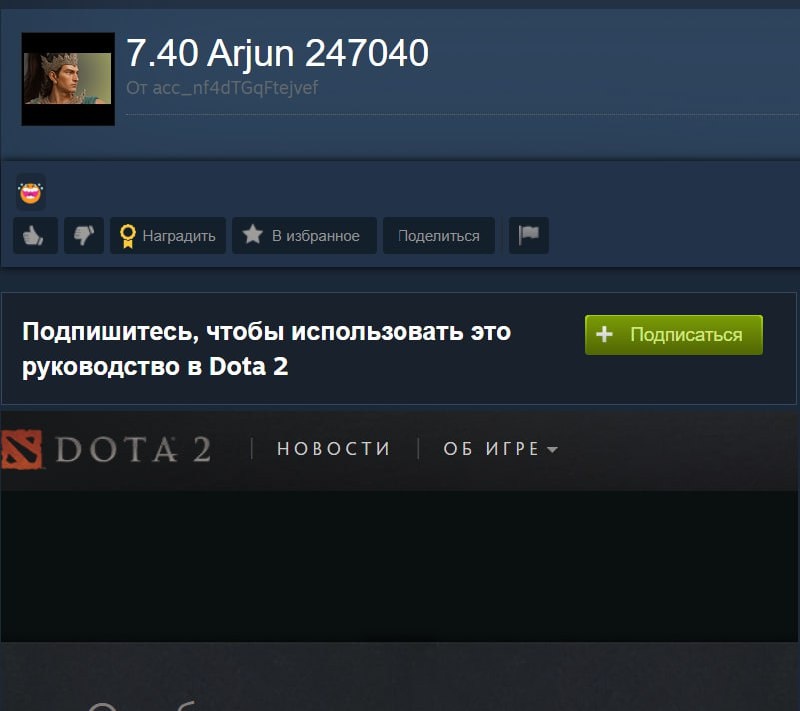 Каким-то образом в Мастерской появился гайд на нового героя Arjun, где автоматически проставляется иконка персонажа