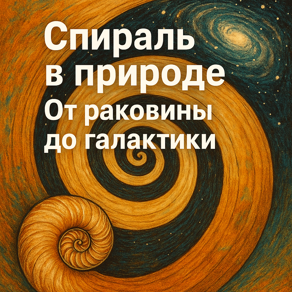 Если долго смотреть на берег, где вода касается песка, можно заметить странную вещь. Вся линия волн кажется хаосом, но каждый раз она складывается в похожий рисунок. Чуть смещается, чуть меняется, но повтор узнаётся. Природа почему-то любит формы, которые одновременно стабильны и свободны, похожи и уникальны. Одна из таких форм, самая упрямая и древняя, это спираль. Начнём с малого. Раковины моллюсков растут именно по спиральному принципу. У них нет архитектора, который сидит внутри и чертит план. Просто клеткам так выгоднее делиться. Угол расширения остаётся примерно одним и тем же, а тело накручивает новые слои вокруг старых. Так рождается форма, которая выдерживает давление волн, удары камней и капризы среды. Переходим выше. В биологии спирали встречаются в ДНК. Двойная спираль не просто красивая картинка из школьного плаката. Это способ упаковать гигантский объём информации так, чтобы он занимал минимум места и мог быстро раскручиваться для чтения. Каждая витая пара — это память