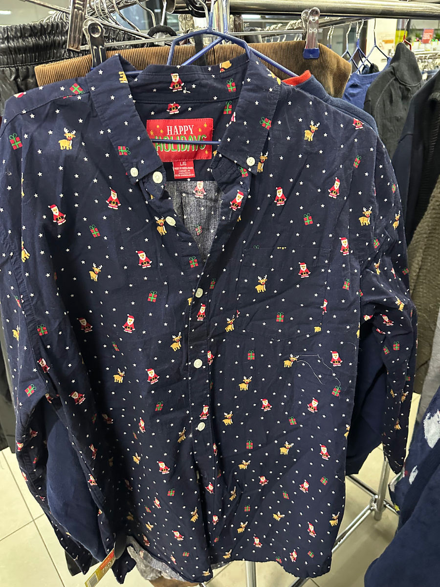 Всем моим читателям доброго времени суток 🫶 Меня зовут Оля и я очень люблю моду, гулять по секондам в поисках сокровищ, исследовать музеи и путешествовать. В начале недели я была в одном из своих любимых секондов в Санкт-Петербурга Точка. Обуви там почти не бывает, зато есть множество других классных находок. Свои примерки я очень люблю показывать. оттуда показывать. В этот раз я не могла оторваться от рейла, где была представлена классная одежда с рождественскими и новогодними мотивами. Начну вот с такой чудеснейшей и очень качественнй рубашки с милейшими оленями и сантами. Хлопковая и очень классная. Цена тоже весьма хороша. В тот день уже была скидка 30 процентов. Очень классный хлопковый бомбер с вышитой елочкй. Судя а всему, вещь немного винтажная и от того такого невероятного качества. Ну и цена. Редкая редкость- сделан бомбер в США. Вот думаю надо было взять). Милейшая плюшевая кофточка с котиком- елкой, на которую пришиты настоящие бубенчики! А как Вам такой чуде