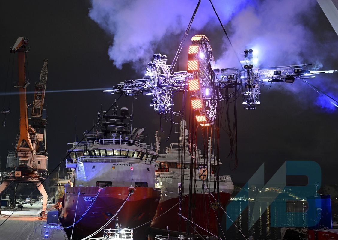 В Мурманске установили мультимедиа-инсталляцию ко Дню атомного ледокольного флота В Мурманском морском порту сегодня появилась уникальная инсталляция «Ключ Арктики/Posthuman Artefact 003». Она задумана как артефакт, передающий символическое послание людям, которые работают в Арктике, посвящена развитию русской Арктики, флагманом которого выступает наша область. А ключевым высказыванием проекта стала фраза: «Мы идем в ледяную пустыню не за славой, а за истиной». Арт-объект на территории порта смогут увидеть все желающие до 5 декабря. Платформа «Дзен» выступила инициатором проекта. А реализован он при содействии правительства Мурманской области. Фото и видео: Лев Федосеев.