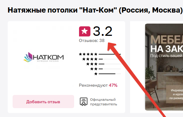 Компания «НАТКОМ» нам плохо установила потолок. Мы не рекомендуем! Рейтинг этой компании на «Яндексе» 4,7! Но на «Отзовик» уже 3,2 . Если в поисковике поискать, то «НАТКОМ» также попадает в рейтинг 🤔 На фото №1 испортили отверткой профиль ПК14 (так не должно быть). На видео показано, как это делается. Тут установщик отверстие сделал отверткой . Также обратите внимание на заплатки на трубах 😳 На фото №2 виден стык у гардины. Длина ПК14 3,2 – 3,6 метра. Окно у нас было примерно 2 метра. Установщик собрал гардину из каких – то кусков 🫣 Аванс 20%, оплата после работ на личную карту менеджеру. Тут также бардак 😏 Самое обидное, что жаловаться некуда. Менеджер по поводу фото фото №1 и фото №2 ответила, что все нормально 🙁 «НАТКОМ» не рекомендуем.