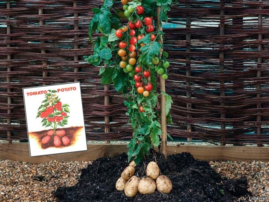 Вчера пришла с работы, включила телевизор. А там показывали передачу про чудо гибрид помидофиль. Это помидор с картофелем. В земле растут клубни картофеля, а сверху спеют томаты. Я впервые о таком чуде слышу. Представляете, какая экономия земельного участка! Поужинав, я решила посмотреть в интернете можно ли на Озоне или Вайдберизе купить семена помидофиля. В своем городе я такие семена в продаже никогда не видела. А семян в продаже оказывается нет на маркетплейсах. Семян помидофиля просто не существует. Но вырастить помидофиль все же можно. А для этого нужно самому привить к стеблю картофеля отросток томата, по аналогии с садовыми деревьями. Что-то я так загорелась этой идеей вырастить помидофиль, что решила в следующем дачном сезоне попробовать себя в роли селекционера. Пару кустиков картофеля в моем большом огороде найдется для эксперимента. Даже если ничего толкового не получится, зато будет опыт Я любитель разных дачных гибридов и экспериментов. Ведь благодаря работам селекционе