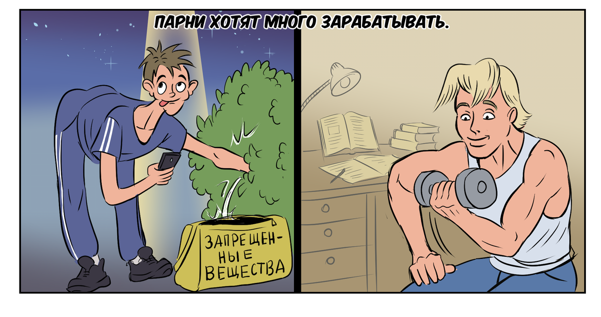 В работе над этим комиксом, как не трудно заметить, я активно использовал нейросети для фонов. Очень удобно и ускоряет процесс, если фон в комиксе не имеет особого значения как в нашем случае. Следующий комикс повествует о выборе. В центре сюжета два подростка, каждый из них стремиться к саморазвитию по-разному. Причины того почему один делает правильные шаги а второй идет по заведомо ложному пути, конечно же не разъясняются. Чаще всего здесь влияет воспитание и окружение. Кому-то повезло кому-то не очень. Способен ли этот комикс наставить на путь истенный? Сильно сомневаюсь. Хотя бы потому, что его и в руки не возьмет тот тип который ничего не читает. А тот кто любит читать, тот и сам способен сделать правильный выбор без всяких