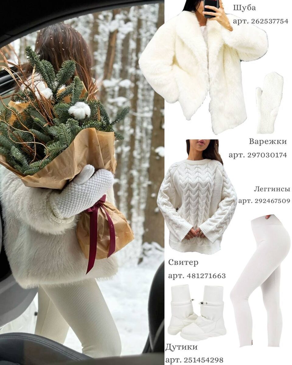 Каждый декабрь повторяется один и тот же ритуал: мы открываем шкаф, видим десятки вещей — и всё равно считаем, что надеть «нечего». Новый год — праздник, который требует настроения. И одежда здесь работает сильнее любой гирлянды: она задаёт тон вечеру, ощущение праздника и уверенности. Я собрала пять образов с WB для Нового года 2026 — от уютной романтики до эффектного вечернего выхода. Все они понятные и легко адаптируются под разные форматы праздника. 1. Белая зимняя нежность Перейти прямо к данному посту в Telegram с активными ссылками на вещи Шуба в молочном оттенке, трикотажный свитер, мягкие варежки и белые лосины создают тот самый «снежный» образ, который идеально подходит для уютного домашнего Нового года или фотосессии на улице. Это не тотал-белый «ради красоты», а продуманный микс фактур: пушистая шуба, плотный трикотаж, ребристые лосины. Дутые ботинки поддерживают образ и делают его практичным. Совет: чтобы белый образ не выглядел плоским, добавьте одну контрастную деталь —