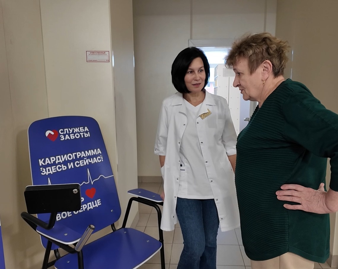Для удобства пациентов его установили в зоне регистратуры. Доступное, без предварительной записи к врачу, кресло с кардиоскринингом можно использовать самостоятельно в любое время и в любом возрасте. Теперь не нужно брать талоны, просить помощи у медперсонала и раздеваться, чтобы провести исследование. Кресло доступно тем, кто нуждается в проверке сердечно-сосудистой системы, так как в нём встроен мини-кардиограф, которым легко пользоваться. Достаточно ровно сесть, на мониторе ввести номер телефона, ФИО, год рождения, рост и вес. После этого нажать «старт», взяться за электроды на подлокотниках и в течение одной минуты спокойно сидеть. В последовательности действий запутаться сложно, ведь человеку помогает голосовой помощник. Затем ЭКГ-запись автоматически проходит подробный анализ с помощью ИИ. Если у человека нет нарушений ритма сердца, то ему приходит в СМС с активной ссылкой расшифрованный результат, подтверждающий, что у него всё нормально. Если же есть выявленные изменения, то