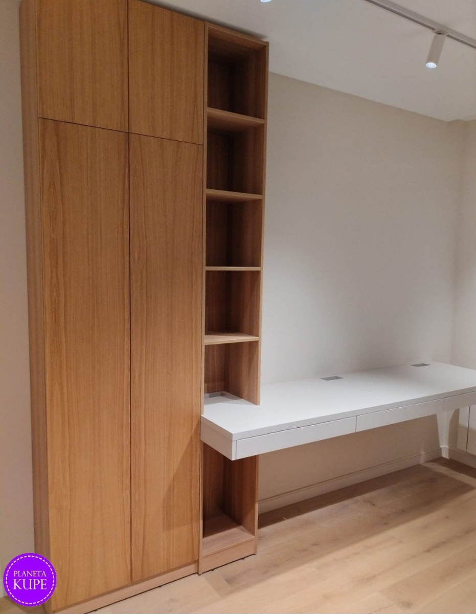 Выполнили новую работу для нашей заказчицы Софии ✨ Современный шкаф с рабочей зоной и открытыми стеллажами стал главным акцентом комнаты: — фасады МДФ шпон дуба + МДФ/эмаль NCS S1502-Y50R — корпус из ЛДСП ЧФМК в цвете Дуб Честерфилд 003 — размеры: 2600 × 2600 × 640 мм (В×Ш×Г) — ящики и верхние фасады с Push to open, нижние фасады - на петлях с доводчиками Hettich 💰 Стоимость: 174 600 руб. Получилось лаконичное и тёплое решение: много закрытого хранения, удобный стол и открытые ниши для книг и декора. Хотите такой же продуманный комплект под ваш интерьер и размеры? Пишите @planeta_kupe или в чат‑бот @planetakupe_bot - подберём материалы, спроектируем и сделаем расчёт. #ПланетаКупе #МебельНаЗаказ #ШкафНаЗаказ #РабочееМесто #ДомашнийОфис #ДизайнИнтерьера #СПб #МебельСПБ