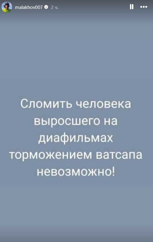 Андрей Малахов бодро реагирует на ситуацию в стране с блокировкой What’s Up😁 Скрин: malakhov007/Instagram принадлежит Meta, признанной экстремистской организацией в РФ Spletnik