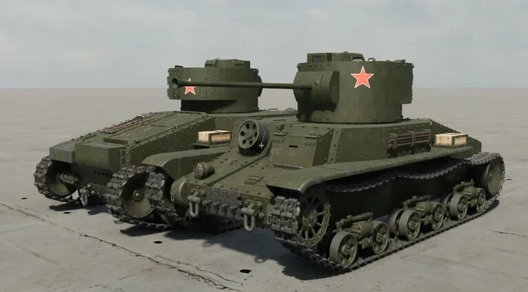 В 30-е годы, главным разработчиком шасси для американских танков был талантливый инженер Гарри Нокс. И когда делегация Халепского, в 1929 году, прибыла в США, она закупили лицензию не только на танк Кристи, но и заказала разработку 6-и тонного танка у Нокса. Американский инженер с энтузиазмом взялся за работу и в 1930 году представил проект своего танка, который впоследствии станет Т-26, одним из самых массовых танков СССР межвоенного периода. Новая машина имела следующие характеристики: Вес — 7,6 тонн Экипаж — 3 человека Основное вооружение — 37-мм автоматическая пушка. Максимальная скорость — 59 км/ч, Бронирование противопульное – по кругу 15-мм Уже в СССР для танка была разработана новая башня, с новым вооружением. Так как 37-мм пушки были в дефиците и их снаряды имели слабое фугасное действие, то на большинство танков стали устанавливать башни с 45-мм пушками 20-К. Двухбашенной модификации в отличии от РИ Т-26, машина не имела. Наиболее распространённые советские Т-26: Самый м