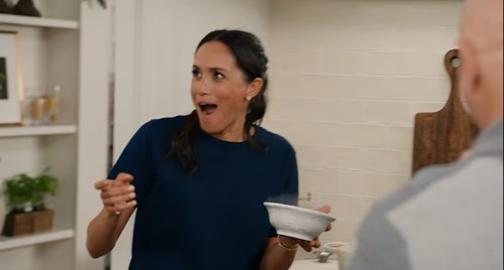 В самый разгар приготовлений, когда Меган вместе со знаменитым американским шеф-поваром Томом Коликкио занята приготовлением свекольного салата,