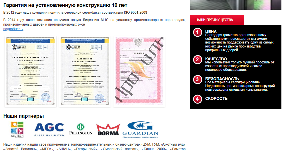 Продвижение сайта производства по изготовлению противопожарных конструкций.