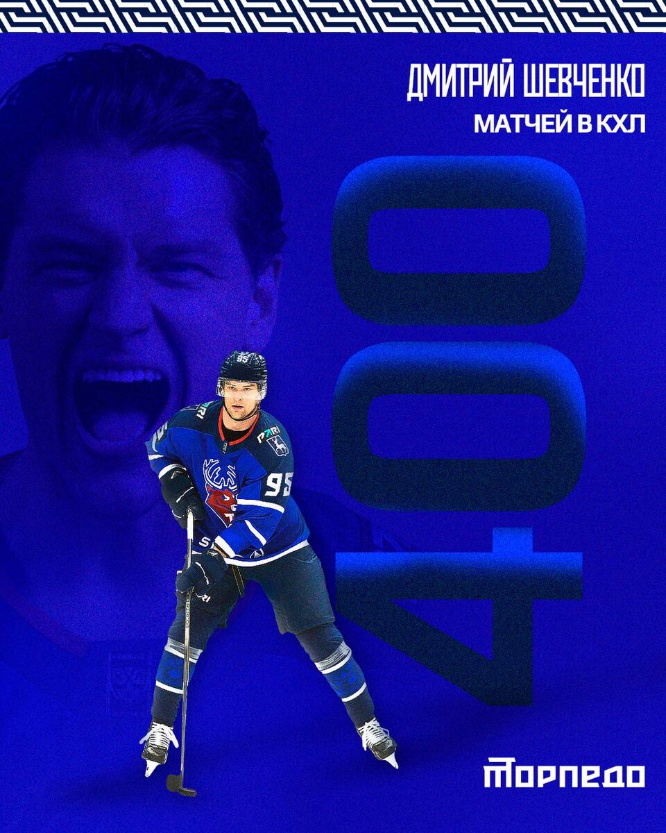 Форвард «Торпедо» 🦌 Дмитрий Шевченко сегодня проводит свой 400-й матч в КХЛ! 🔥
