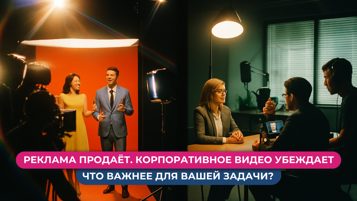 Не всё, что снято красиво, продаёт. И не всё, что продаёт, рассказывает о компании Когда заказчик приходит в видео агентство и говорит: «Нам нужно видео, чтобы рассказать о компании и привлечь клиентов», — возникает вопрос: а что именно нужно? Корпоративный ролик или рекламный? По опыту — в 8 случаях из 10 это смешано в голове в один формат. На деле это два разных инструмента, у которых разные задачи, логика и правила. Корпоративный ролик: укрепляет доверие и идентичность бренда Корпоративное видео создаётся, чтобы рассказать о компании изнутри: кто вы, чем занимаетесь, на что делаете ставку. Оно может объяснять процессы, погружать в миссию, показывать масштабы и достижение целей. Его задача — сформировать доверие и позицию. Стандартные цели: рассказать о компании новым партнёрам; укрепить внутреннюю культуру (HR, бренд-ролики); презентовать проект/услугу на выставке; сопровождать инвестиционный раунд; зафиксировать статус в отрасли. Примеры: видео к юбилею компании, ролик для встречи