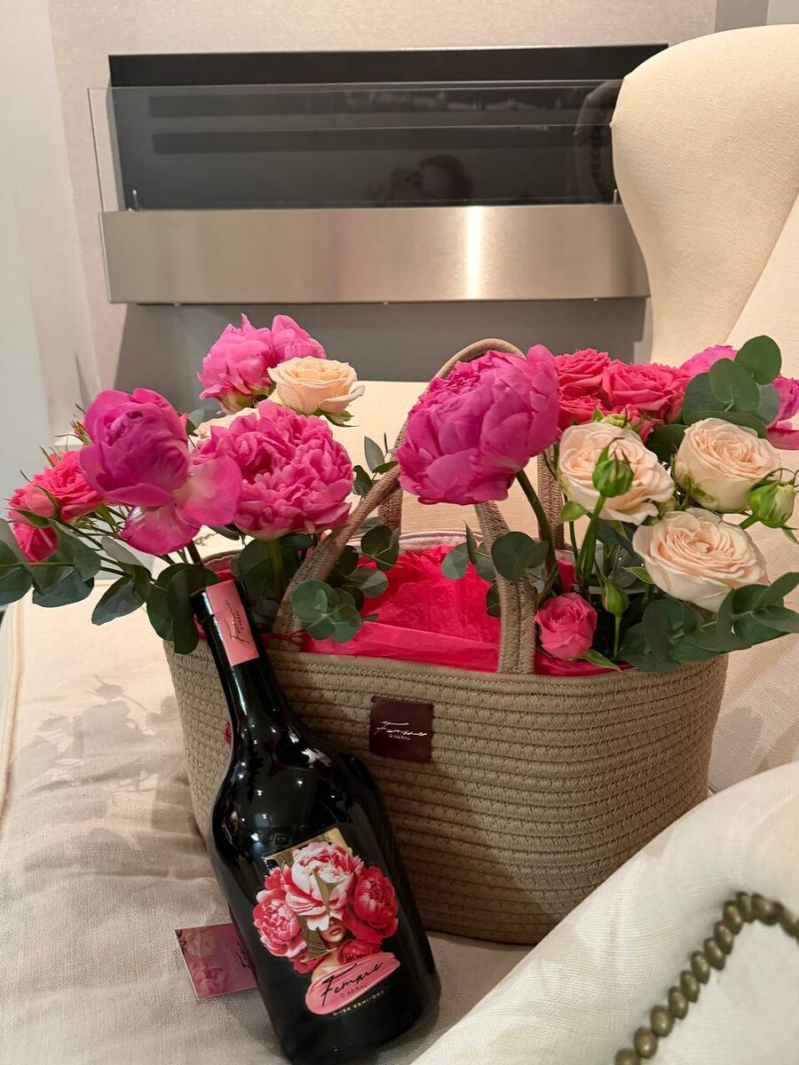 +100500 к настроению, когда в холодный мрачноватый четверг привозят вино… С букетом весенних цветов 🌺 Думала — поклонник! Но нет, лучше — Абрау🤍 @abrau_durso_official