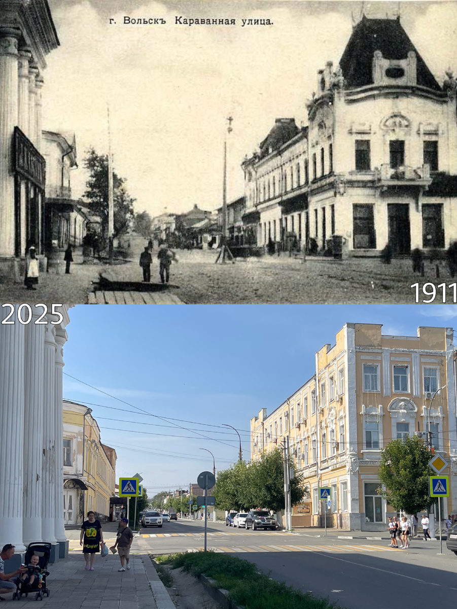 У кого-то есть мечта увидеть Париж, а я всегда хотел добраться до Вольска. Многие даже не знают, где находится этот город. Вольск находится в Саратовской области. Стоит город на Волге. Я очень хотел показать вам, как поменялся город с дореволюционных времен. До революции Вольск был очень богатым городом. Перед революцией тут проживало почти 40 тысяч человек. Это был хлебный город. Также тут работали судостроительные заводы, знаменитые на всю империю цементные заводы. Следы этого богатства видны в городе до сих пор. Он весь усеян памятниками эпохи модерна. Но есть тут и образец и классической архитектуре. Старый гостиный двор до наших дней тоже сохранился. Появился он тут еще в XVIII веке. Поражает, как на старых кадрах полны людей улицы Вольска. Энергия бьет! Говорят, что поголовье скота у местных жителей достигало 5 тысяч голов!!! Вот так богато жило поволжское купечество. Пристани дореволюционного образца в городе сейчас нет. Но небольшие кораблики возят жителей на соседний бере