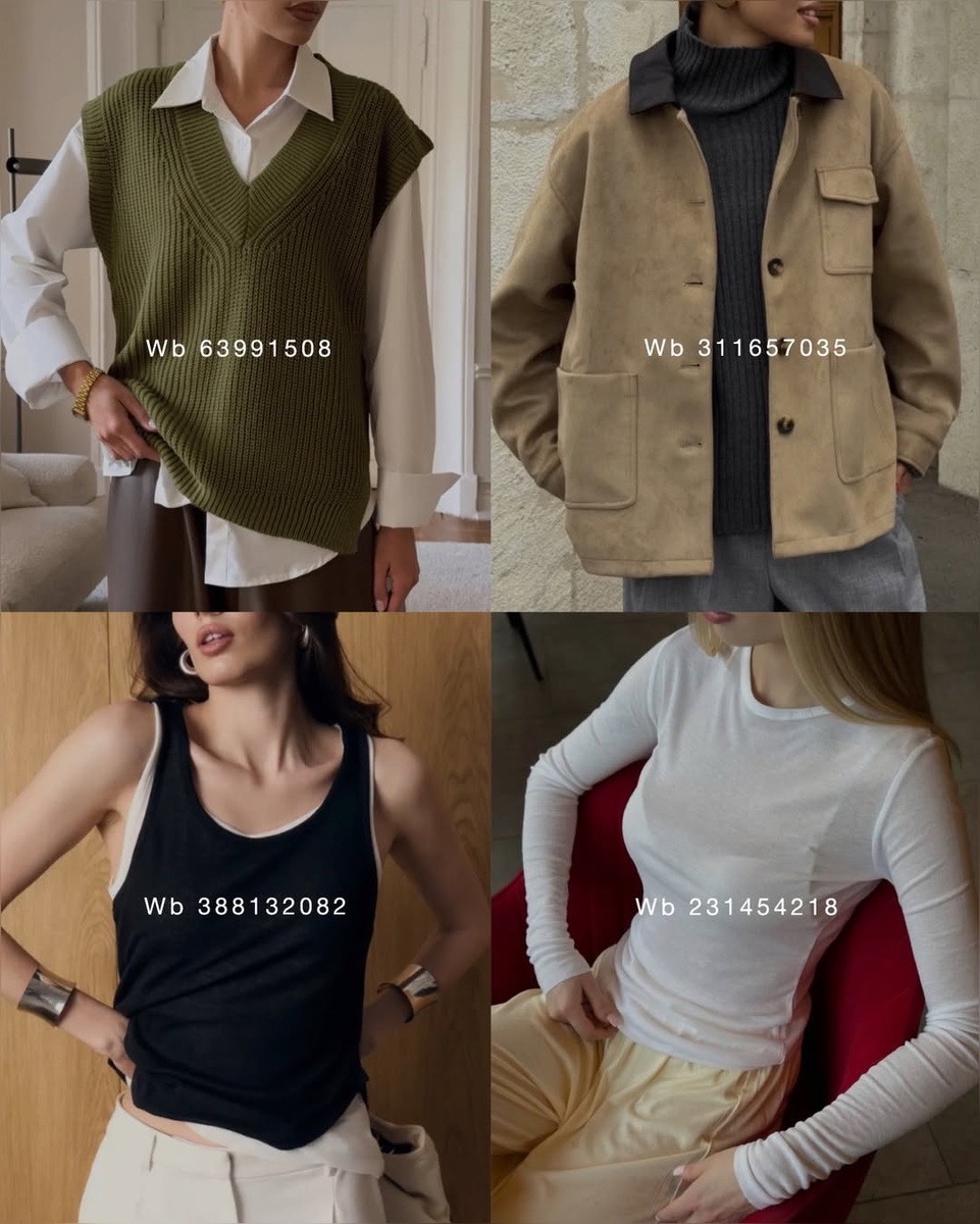 Эта подборка — пример того, как спокойные оттенки, чистые линии и выразительные фактуры способны создать идеальный универсальный гардероб. Каждая вещь — самостоятельная, но вместе они образуют гармоничную систему: от трикотажа до аксессуаров, от базовых маек до структурных сумок.