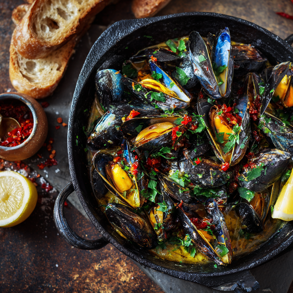 Moules-frites - это не просто блюдо, а почти национальный символ сразу двух стран: Бельгии и северной Франции. Если вы ищете рецепт для уютного вечера с бокалом вина и вкусным сюрпризом - эти знаменитые мидии с хрустящим картофелем обязательно станут фаворитом в вашей кулинарной коллекции. Кстати, смею напомнить ещё о паре рецептов этого морепродукта. Родом из рыбацких деревушек на побережье Северного моря, moules-frites в начале XX века постепенно превратилось из простой еды в настоящий повод для встречи с друзьями, особенно в брюссельских брассериях. И сегодня, как туристы, так и местные, с удовольствием устраивают целые гастрономические марафоны «мидии с фри». Классика moules-frites - это мидии, приготовленные на пару или в небольшом количестве белого вина, с щедрой порцией свежих трав, а к ним обязательно подаются картофель фри. Разумеется, вариантов приготовления существует множество: где-то добавляют сливки, где-то - пиво, а иногда играют с ароматом копченостей и специями. Предл