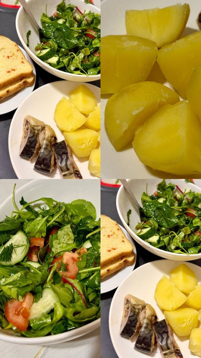 Мой ужин сегодня — это то, о чем я мечтала весь рабочий день😋 Горячая картошечка, рыбка и свежий салатик, щедро усыпанный сочной зеленью 🥬🥦 Наконец-то я дождалась этого момента слюнки текут рекой 🤤