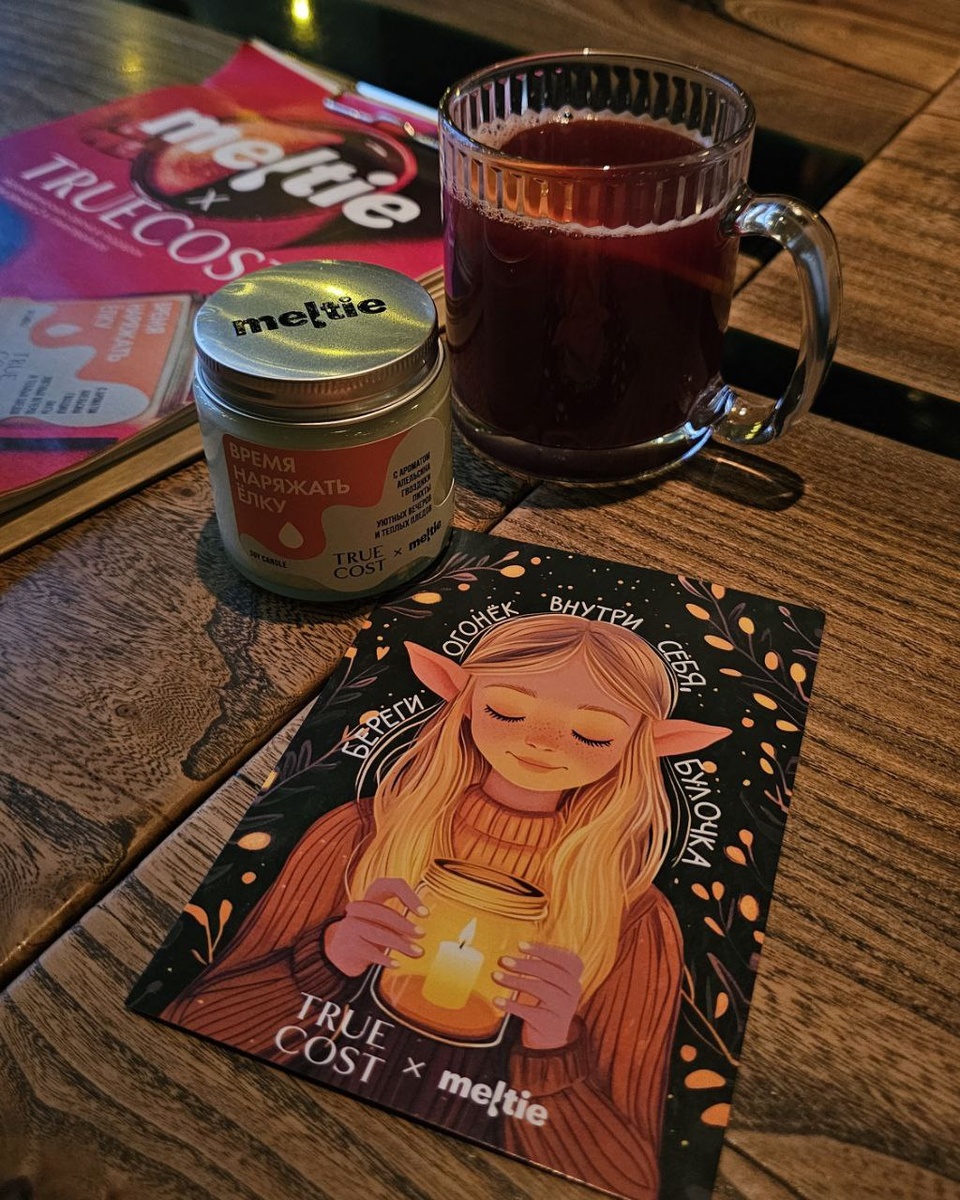 Навеваю себе новогоднее настроение. Начала, как всегда, с себя и забежала в TRUE COST на Большой Дмитровке #кудаходитматрёша Атмосфера у ресторанов уже праздничная: гирлянды, музыка, лёгкий аромат корицы в воздухе. А ещё меня зацепила новогодняя коллаборация, мимо которой невозможно пройти При заказе двух глинтвейнов дарят ароматическую свечу от бренда Meltie. Есть две на выбор: • «Время наряжать ёлку»: апельсин, гвоздика, пихта и ощущение дома, где пахнет мандаринами и уютом • «Загадаю тебя в 00:00»: корица, пряности и та самая магия новогодней ночи Мне досталась первая, и теперь кухня пахнет, как декабрь в старом фильме Здесь честные цены, и я опять пожадничала. Взяла магаданские креветки на льду, бурату с помидорчиками. А муж форель с ризотто. Вдумайтесь, счёт вышел всего на три тысячи, где это видано? А да, я ещё и сливочное пиво по мотивам Гарри Поттера зацепила. Вкуснейшее, приду за ним ещё Запоминаем адрес: ул. Большая Дмитровка, 13. Свечи ждут своих владельцев до 5 дека