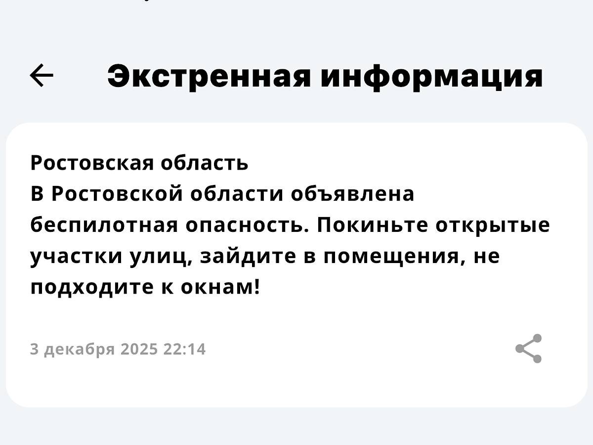Беспилотная опасность объявлена в Ростовской области