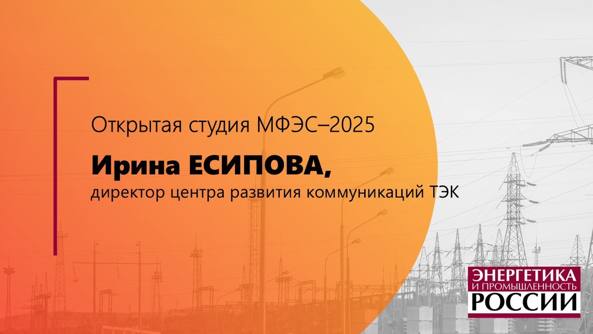 ✅ Ирина Есипова в Открытой студии газеты «Энергетика и промышленность России» на МФЭС-2025 🔥Интервью директора центра развития коммуникаций ТЭК Ирины Есиповой шеф-редактору газеты «Энергетика и промышленность России» Славяне Румянцевой в открытой студии, работающей на Международном форуме «Электрические сети – 2025 (МФЭС-2025) 2 декабря 2025 года в московском ВЦ «Тимирязев» 📺 ВИДЕО ДОСТУПНО ПО ССЫЛКЕ 👉Актуальные новости энергетики на сайте и каналах ЭПР: Сайт | Telegram | ВКонтакте | YouTube | Rutube #новости_энергетики #открытая_студия #МФЭС #МФЭС2025