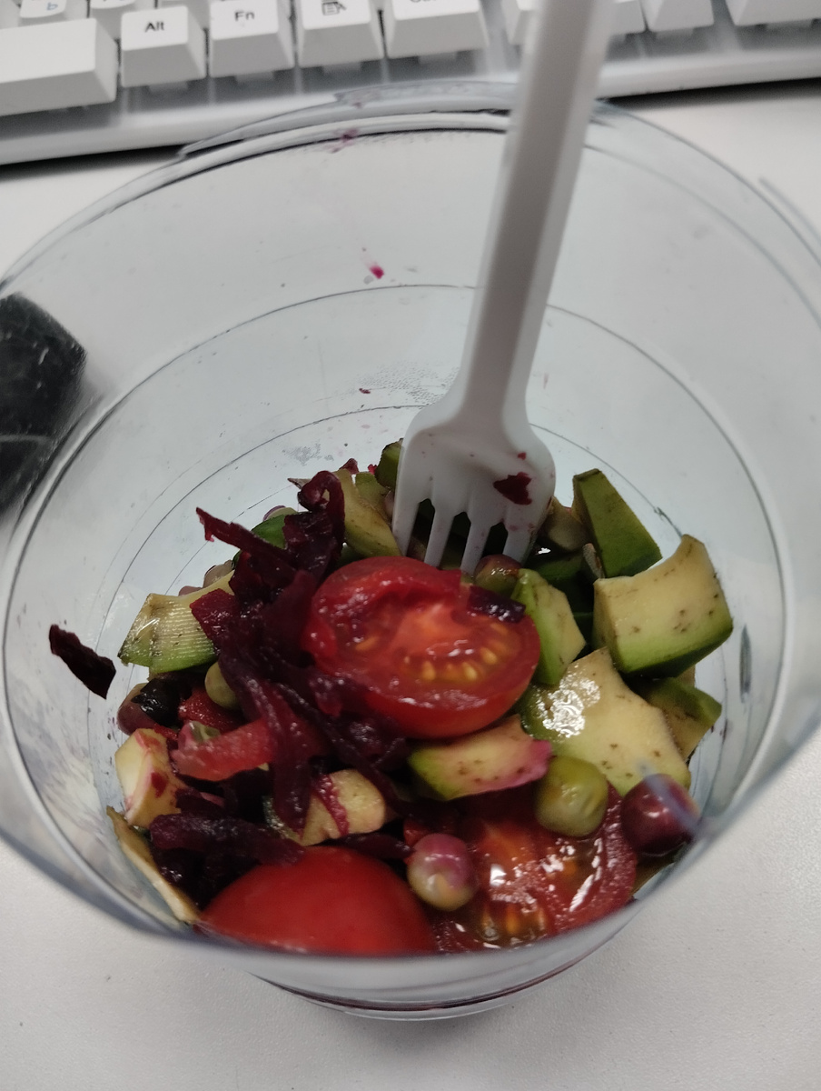 Привет, друзья! Начинаются по истине стахановские дни у меня на работе, конец года и надо заполнить много журналов до конца и сделать много отчётов -работа есть работа. Сегодня я пришла на работу к 8 утра, хотя официально я работаю с 10 , прием был до 15ти, потом дополнительная смена с 20 до 22х. В перерыве я все равно была на рабочем месте, так как не успеваю на приеме работать и делать отчёты одновременно, это не реально. Успокаиваю себя тем, что скоро будут длинные новогодние праздники и я смогу отдохнуть и расслабиться. Сегодня на работу брала с собой несколько перекусив, еше бы... 14 часов на рабочем месте, я наверное с ума сошла, надо себя жалеть , надо конечно но такой напряг всегда бывает в конце года. Мои перекусы в течении дня: 1. Бутерброды с печеночным паштетом 2. Сыр 3. Бутерброды с авокадо 4. Салат из запеченой свеклы и моркови, авокадо, помидор черри с ореховым маслом 5. Творог с авокадо. 6. Запеченая куриная нога😁 7. Немного кефира 8.Чац, вода Вот такой был у