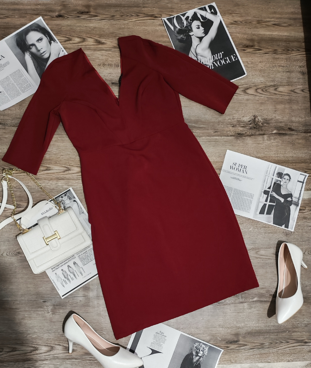 1.Платье Zara глубокого винного цвета , с в образным вырезом на груди и спине.Идёт маломерка ,хоть и стоит размер л ,но это явно 42 максимум 44. В отличном состоянии.