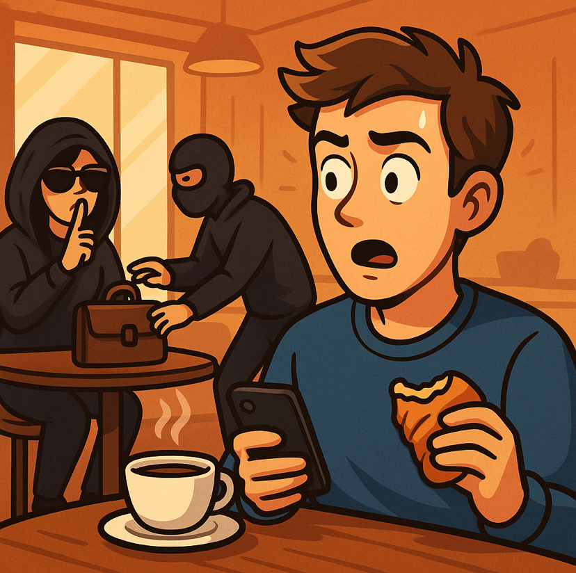 Есть люди, которые попадают в истории. А есть я — человек, вокруг которого истории собираются сами, как голуби вокруг булочки. Всё началось в субботу утром. Я решил наконец-то спокойно попить кофе в кафе рядом с домом. Но спокойствие — это то, что у меня получается хуже всего. ☕ Часть 1. Непривычно подозрительная пара Я сидел у окна, ел круассан и мысленно уговаривал себя начать новую жизнь с понедельника, когда в кафе вошли они. Парень в чёрной худи и девушка в огромных солнечных очках. Ничего странного бы не было, если бы они не: вошли, не сказав ни слова, сели прямо позади меня, и начали шептаться так громко, что шептание уже было намёком: «подслушай нас, пожалуйста». Я человек не любопытный… ну ладно, любопытный. И я услышал: — "Он придёт через 10 минут. Постарайся, чтобы он не вышел." — "Хорошо. Главное — без лишнего шума." Я поперхнулся кофе так громко, что бариста посмотрела на меня с жалостью, как на человека, который только что потерял смысл жизни. 🧥 Часть 2. Мужчина с ке