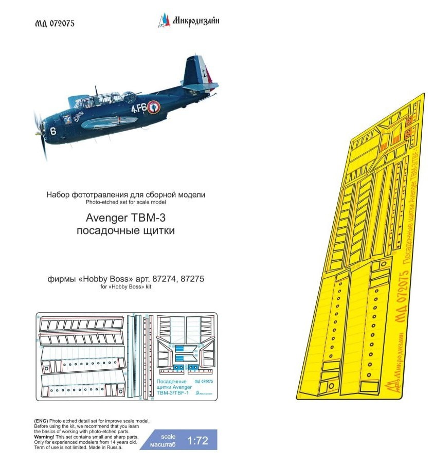 "Микродизайн" из Севастополя выпустила фототравленые посадочные щитки для модели Avenger TBM-3 в масштабе 1/72 от Hobby Boss