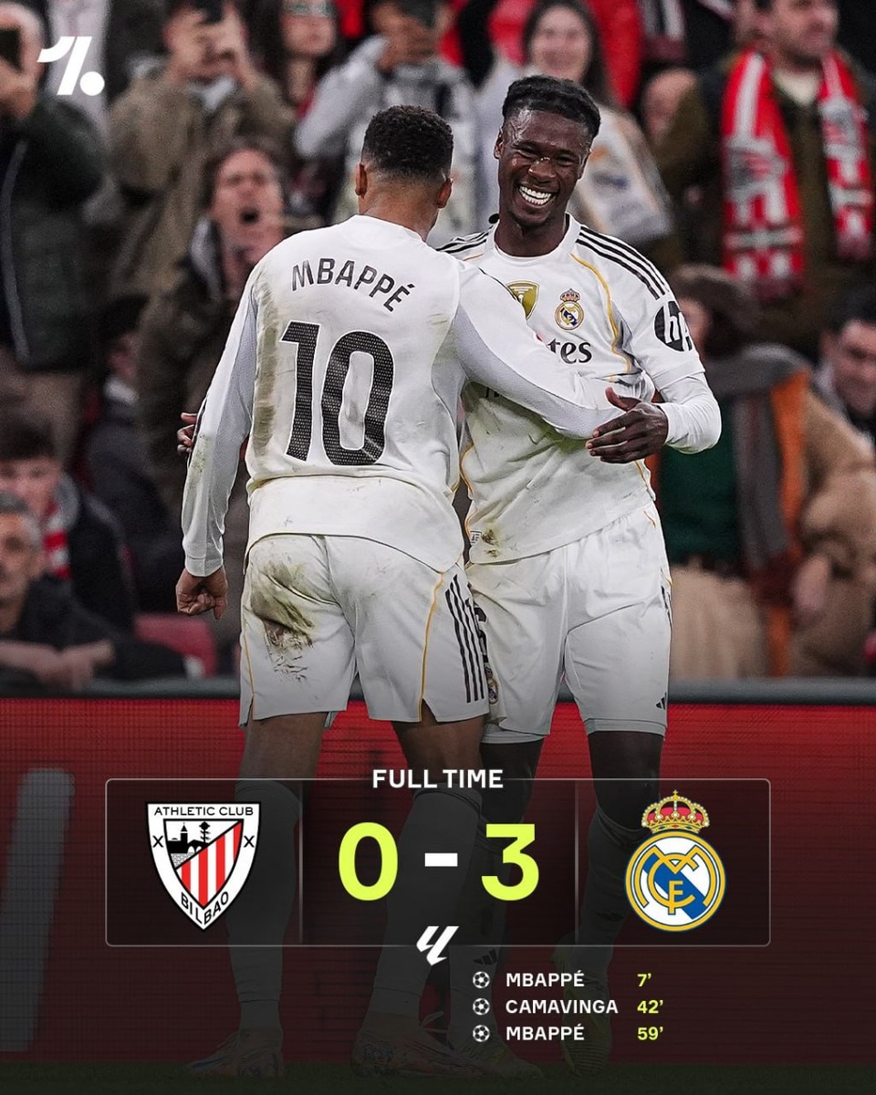 ❗️ Атлетик Бильбао 0:3 Реал Мадрид ⚽️ 0:1 Мбаппе (Трент) 7' 0:2 Камавинга (Мбаппе) 42' 0:3 Мбаппе (Каррерас) 59' p.s Атлетик сыграл максимально удобно для нынешнего Реала, собрал комбо в игре без мяча : - Хозяева шли в высокий прессинг с поднятой линией обороны, но постоянно давали открытый мяч и разбивались на две части. То есть, часто можно было наблюдать ситуации, в которых игроки Атлетика давили с низкой интенсивностью давая Сливочным спокойно оформлять длинные забросы + их высокая оборонительная линия была статична и не шла в давление вместе с прессингующей группой, что позволяло Мадридцам и за спины убегать (ведь там было много пространства) и на подборах первыми оказываться (ведь между защитой и полузащитой у Атлетика просто не хватало игроков, которые могли бы бороться за вторые мячи) * Бонусом ко всему вышеперечисленному можно добавить и вертикальное владение Атлетика, которое провоцировало переходные эпизоды раскрывая игру в обе стороны. Не говоря уже о том, что часто хо