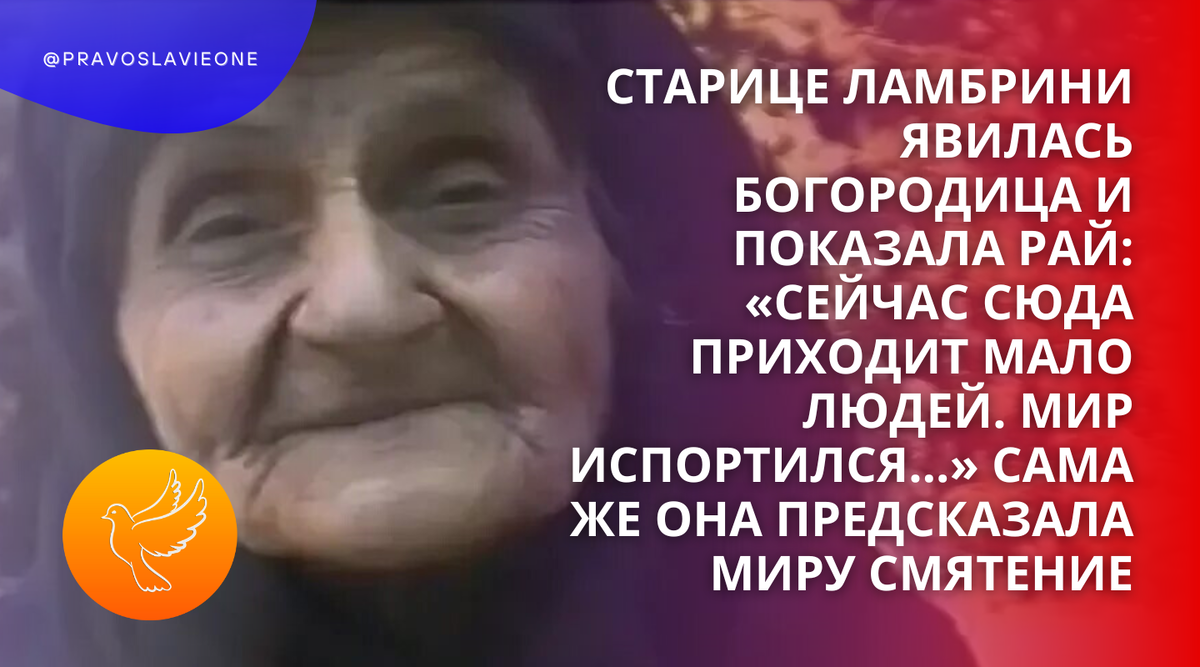 После этого, — рассказывала старица Ламбрини, — мне стало очень больно за эту душу. Я всегда была чувствительна к чужим страданиям: если слышала, что кто-то голодает, то и сама не ела, а если была возможность, приносила ему еду. И вот я думала: дать ли этой душе капельку воды кончиком пальца или нет? Пресвятая Богородица предупредила, что если я это сделаю, мне обожжёт половину руки до самого плеча. Услышав это, я засомневалась, но мне было так жаль этого человека. Тогда я попросила Богородицу разрешить мне окунуть палец и дать ему немного воды. — «Твоя рука сгорит. Но раз ты так хочешь, окунай, только я буду рядом». — «Да, я хочу. Ведь это тоже душа. Может, и со мной такое случится». — «Да не будет с тобой такого», — ответила она. Я окунула палец, и моя рука тут же горела. Она сильно болела, я дула на неё, но ничего не помогало. С тех пор палец на этой руке у меня не двигается, он стал твёрдым. Даже если отрезать — я ничего не почувствую…