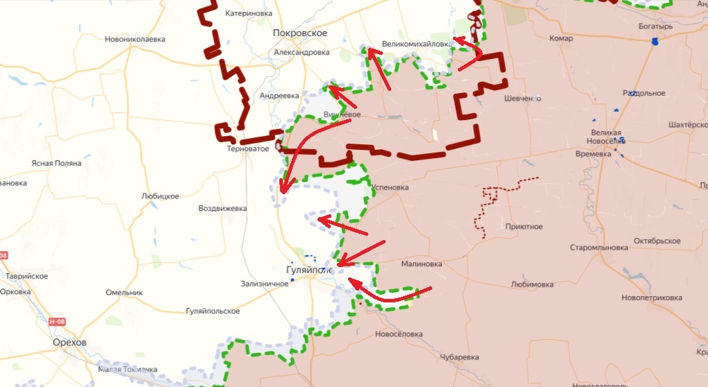На юго-восточных рубежах наш каток продолжает своё неумолимое движение на запад. Зона его ответственности сейчас выглядит так: Каток продолжает давить на всей протяжённости линии соприкосновения. Можно скромно так прикинуть её длину в 60+ километров! На самом деле огромная цифра для нынешнего времени и самое главное, что на всём протяжении этой линии каток давит и давит каждый божий день. Каждый день оттуда новости о переходе нового посёлка в наши руки, каждый день прибавляется территория, причём уже не новость и не исключение, когда бывает и по 20кв.километров в день, а самое главное - мы в ежедневном режиме истощаем ту сторону. Чуть ниже мы объясним почему у нас заметное преимущество в истощении их сил и почему наших сил меньше не становится. Не будем откладывать в долгий ящик, взглянем на самый огненный участок: Наверное, ни для кого не новость, что наши в городе, каток не стал делать клещи, а просто заехал туда, как хозяин. Сопротивление было, но такое... короче, такое, что позв