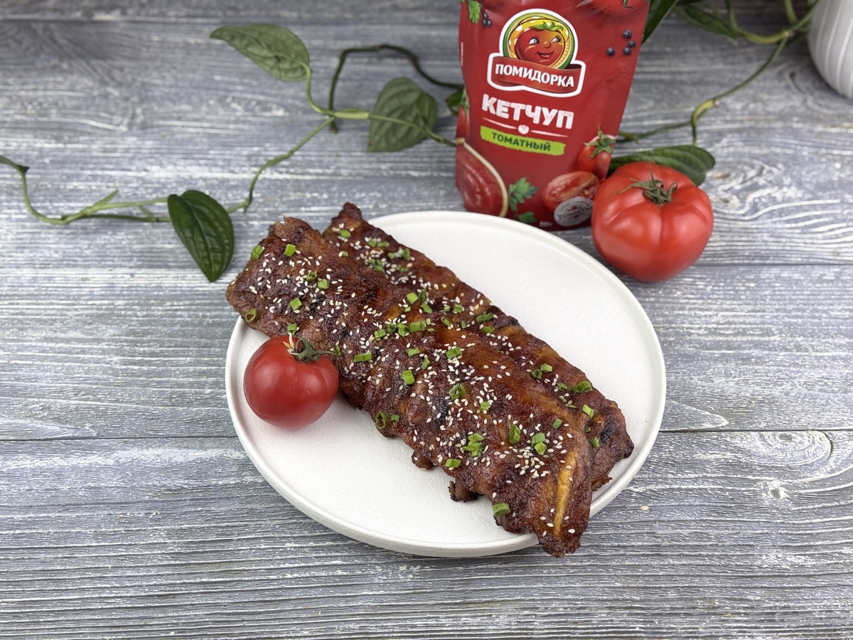 Эти ребрышки получаются настолько нежными, что мясо само отходит от кости, а пикантная кисло-сладкая глазурь заставляет тянуться за добавкой снова и снова. Секрет идеального вкуса — в томлении и правильном соусе с кетчупом «Помидорка».