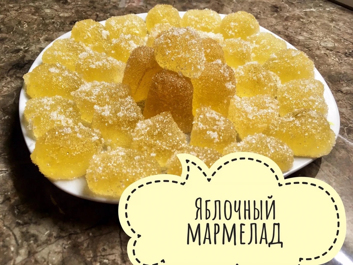😋Мармелад, он и в Африке мармелад. Но без всяких загустителей, красителей и сохранителей. Как это в последнее время продают. Такой домашненький и на основе натурального сока☝🏻 За 5 минут 👨👩👧👦 готово лакомство для всей семьи! 👩🏻🍳Ингредиенты: Сок яблочный 0,5 стакана Сахар 2 стакана желатин 20 грамм вода 100 мл 👩🏻🍳Приготовление: 1. Желатин залить соком и оставить набухать минут на 10. 2. Сахар заливаем водой и ставим на огонь. Помешиваем до полного растворения сахара. 3. Далее после закипания выключаем газ и добавляем в сахарный сироп набухший желатин. И хорошо все перемешать. 4. Разливаем в небольшие формы или пластом. Ставим застывать в холодильник. 5. Извлекаем из формы наш мармелад, а если пласт, то нарезаем любыми фигурами. Обваливаем каждую мармеладку со всех сторон в сахаре. Приятного всем!!