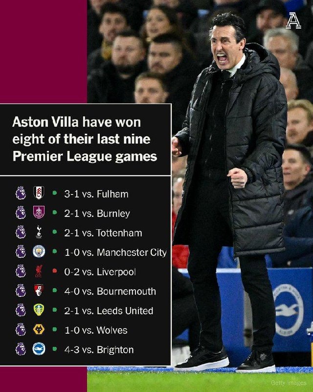 "Астон Вилла" только что одержала свою восьмую победу в девяти последних матчах Премьер-Лиги. Команда Унаи Эмери уже на третьем месте 📈