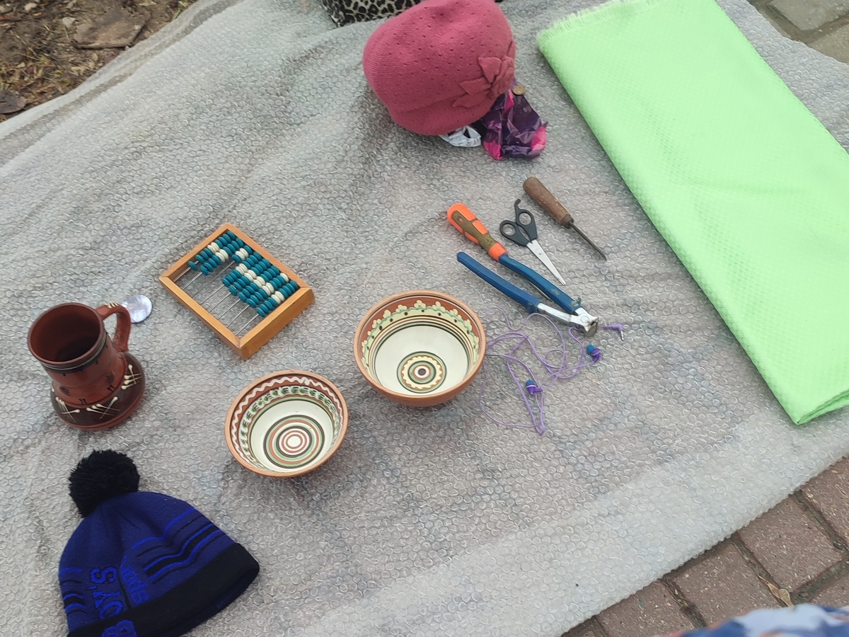 Под деревом приютился одинокий баян. Но состояние у него плачевное. Клавиши проржавели, меха слиплись... Видимо, это его не первый выход в открытом виде на барахолку в плохую погоду... У меня мама закончила школу по баяну. Но лет 10 назад продала свой баян и я его, кстати, видела у баяниста, который играл у нас на пешеходной улице. Но потом он (баянист) куда-то пропал...