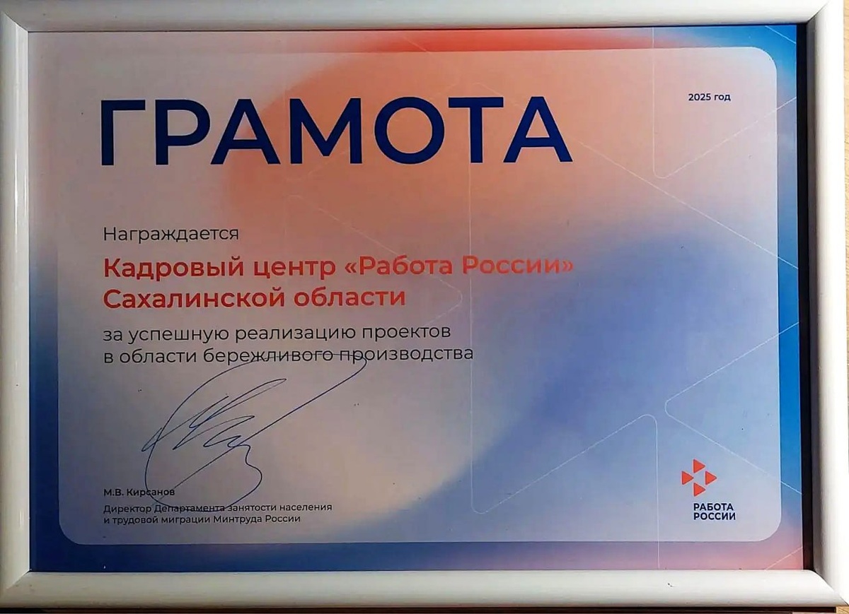👏 Кадровый центр Южно-Сахалинска получил федеральную грамоту